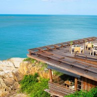 "Dining on the Rocks" – это прекрасный ресторан, расположенный на острове Самуи, Тайланд. В его меню представлен большой ассортимент блюд кухни фьюжн. Это уютное заведение, располагающее просторной террасой и двумя небольшими залами. Его площадь составляет 120 квадратных метров, а вместительность – 30 человек. Во внутренней отделке преобладает красное дерево и металл. Днем в заведении очень шумно и весело - царит праздничная непринужденная атмосфера, а в вечернее время оно превращается в прекрасный романтический уголок, который отлично подойдет для уединения влюбленной пары. Цены здесь очень высокие, но оправданные качеством и быстротой обслуживания.