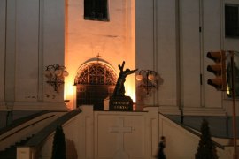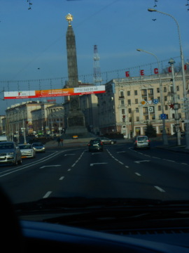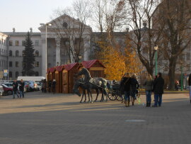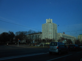 рядом Красный костел,дом Правительства. Под площадью -ТЦ " Столица"- подземный город.